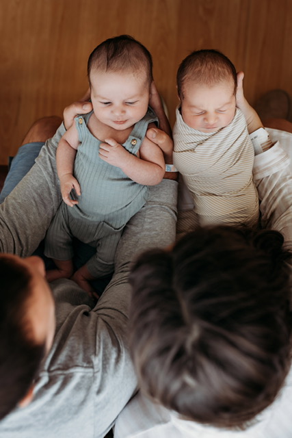Thanks! We love our story so much, although we NEVER had this in mind when we set out to start our family. I was ready to be a mom before I even got married, so when my husband and I finally started trying, I was very excited, eager, and impatient. The very first month we were already using ovulation kits and tracking my cycle in apps, I wasn’t trying to waste any time. We did this for several months with no positive news. Very long story short – after a year we started IVF, had 2 egg retrievals and 5 embryo transfers (the very last one resulting in a first time ever positive pregnancy with subsequent miscarriage). At this point we had been trying close to 3 years and my mind and body were shot. We decided to go the surrogacy route to have our first baby and then continue IVF on myself down the road for any additional children. After much thought and research, we chose an agency and met a surrogate who became pregnant with one of our embryos. One month later, I surprisingly found out that I, too, was pregnant all naturally. It was the shock of a lifetime! So that is how we ended up with Sam and Charlie – biological brothers born 30 days apart!